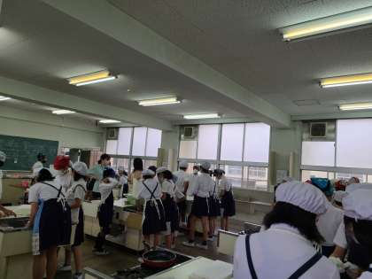 今日は6年生の調理実習の様子です。野菜炒めを作りました。