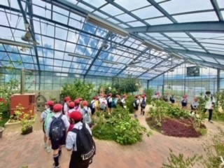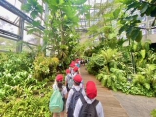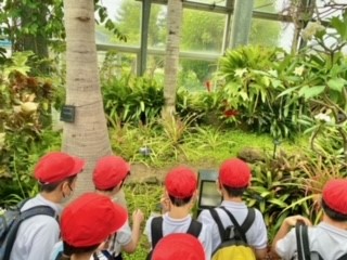 咲くやこの花館を見学しています。世界各地の様々な植物を実際に目にして驚いていることでしょう。