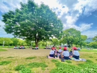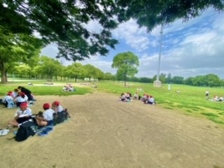 芝生広場でお弁当タイムです。本当に雨があがって良かったです。