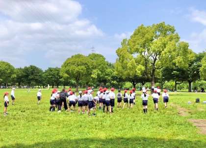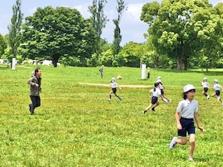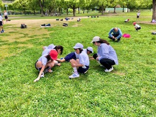 お弁当を食べた後は、芝生で「だるまさんが転んだ」をしたり、「四つ葉のクローバー」を探したりしています。