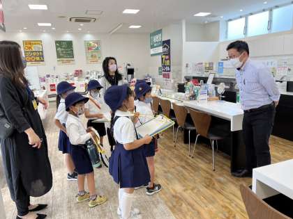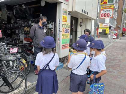 サイクルマンとビジョンメガネを訪問したグループです。子ども達の質問に対して、どの施設の方々も快く丁寧に答えてくださいました。本校の取組みにご協力いただき、本当にありがとうございます。