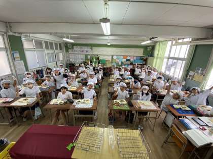 今日は、開校149周年の記念日ということで、給食時間の放送で全校生にお知らせすると、いろいろな学級から「おめでとう!」「かんぱい!」という声や拍手の音が聞こえてきました。