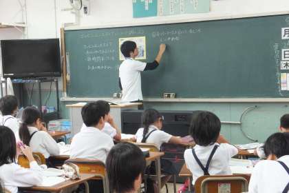 指導をしているのは担任の先生ではなく、教育実習の先生です。でも、子どもたちは、いつも通りに手を挙げ、コンビニとスーパーマーケットの違いや共通点を学んでいました。