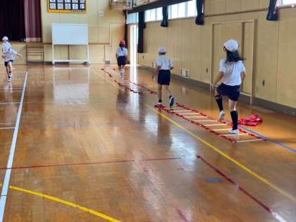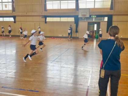 3年3組の体育の授業で「5秒間走」を行っています。20mを5秒以内に走るという内容です。