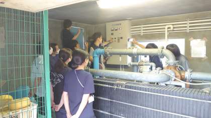 14日(水)放課後、プールのろ過機の操作方法を確認する講習会を行いました。