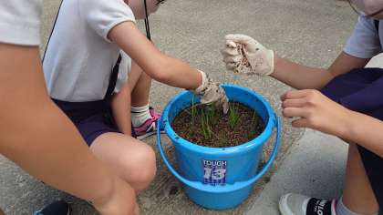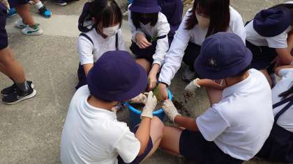 16日(金)、農協の方をゲストティーチャーに招き、5年生がバケツ稲体験を行いました。