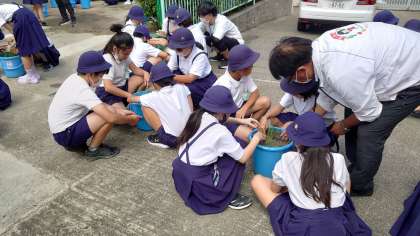たっぷりの水を含ませた土の感触や苗を植える時の感覚を楽しんだようで、みんな笑顔で活動していました。