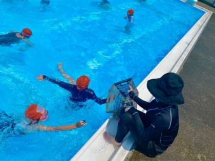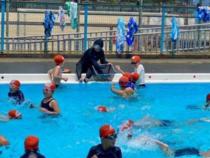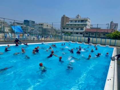 今日は最後に「宝探しゲーム」をしました。水中に落ちている物を拾って数を競っていました。