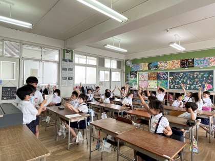 写真や言葉を上手に活用して資料を作成し、3択クイズを盛り込んで発表したことで、聞く側の子ども達も楽しみながら、そして盛り上がりながら情報を共有することができました。