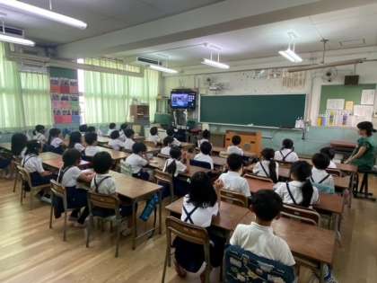 2年生と5年生の児童代表が、1学期の思い出と2学期に頑張りたいことを発表してくれました。1学期に経験したことをしっかり胸に刻んでいる様子やこれからの個人の目標をしっかり定めていることが伝わる立派な発表でした。