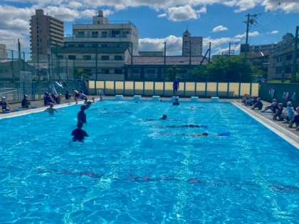 とは言え、プール内でも熱中症の危険がつきまといますので、休憩や水分補給をこまめにとりながら安全に進めていきます。