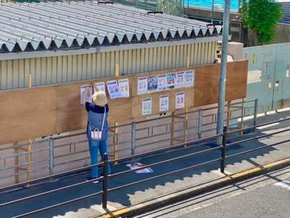 暑い日差しの中、夏まつりのポスターを掲示し、広報活動をしてくれています。