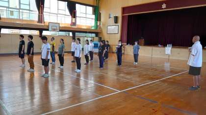「右向け、右」や「回れ、右」などの足の使い方を再確認し、実際に実技を通して学んでいきました。2学期の運動会は、4年ぶりに全校児童での一斉開催を予定しています。今回の集団行動研修の成果をお見せできますよう努力します。