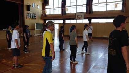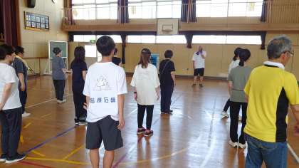 24日(月)午後前半は、島屋小学校の金沢先生を招いて、集団行動の研修会を行いました。