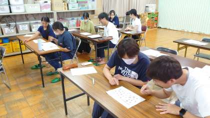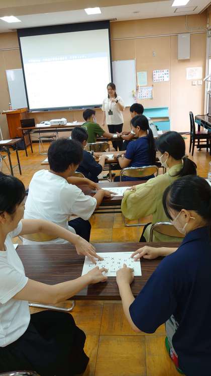 教育センターから外国語指導専門の先生を招いて、外国語や英語の授業の流し方を学んだり、楽しいアクティビティを体験したりしました。