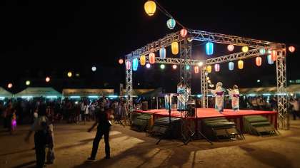 まつりのラストは櫓を囲んで盆踊り。老若男女が笑顔で踊っていました。
