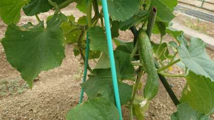 特にきゅうりの実はあっという間に大きくなるので、1日2日収穫を遅らせると、ヘチマやズッキーニのように大きくなってしまいます。本日収穫したのは30cmのきゅうり。