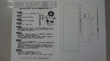 夏休み明けの8月25日(金)〜29日(火)の間に、子ども達が考えた標語を職員室へ知らせてください。連絡帳や自由帳などに記したきたもので構いません。学校でまとめて応募します。