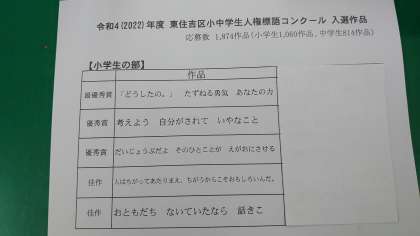 今回は区が募集している「東住吉区人権標語コンクール」を紹介します。
