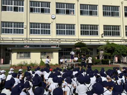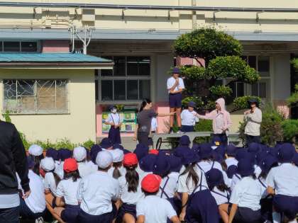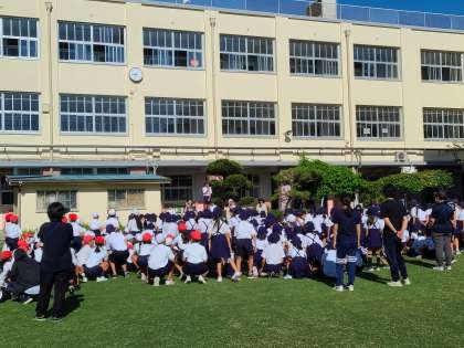 今回のゲームは「じゃんけん大会」です。中運動場では朝から元気な歓声が聞こえていました。先生同士の対決では、どちらが勝つのか大注目で、子どもも先生も一緒に盛り上がることができました。