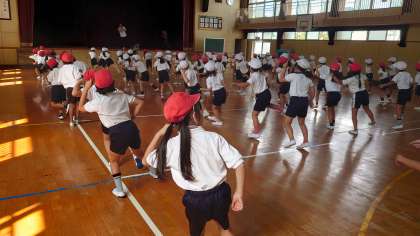 振付を覚えるのに必死で、動きを揃える練習はもう少し先になりそうですが、先生の動きを真似して一生懸命踊る姿が見られました。