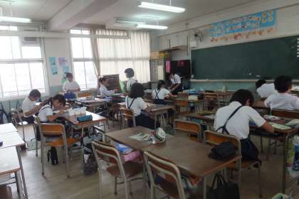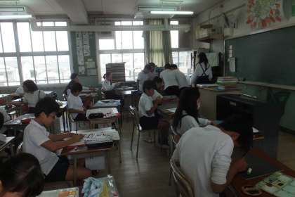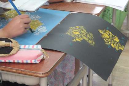 浮世絵の版画の完成が近づいています。下絵を丁寧を彫り終えた人から、色を重ねて多色刷りの版画にしていきます。子どもたちは、真剣な眼差しで集中して作業を進めています!!