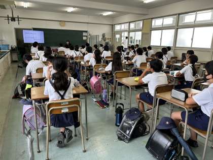 6年前は小さかった6年生も、半年後には中学生になります。憧れと不安を抱きながら、6年生は中学校での授業を体験していた様子です。