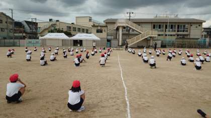 先週までは体育館で練習を進める学年が多かったのですが、今週から校庭で練習を始める学年が増えてきました。