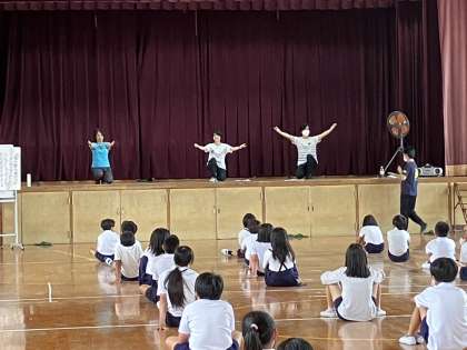 11月の末にミュージカルを全校生で鑑賞する予定ですが、そのミュージカルに5年生の代表が参加する予定です。今日は、そのためのワークショップが行われました。