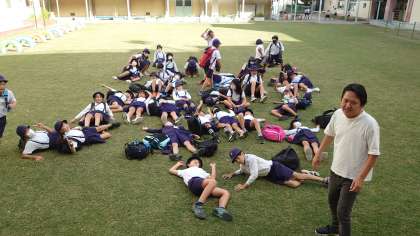 学校到着直後の5年生の様子です。