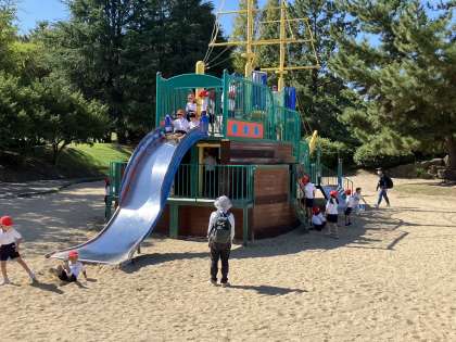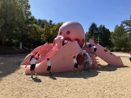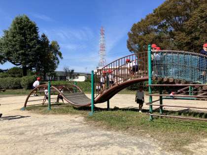 学校や近くの公園には無い大きな遊具で思い切り体を動かして楽しんでいます。