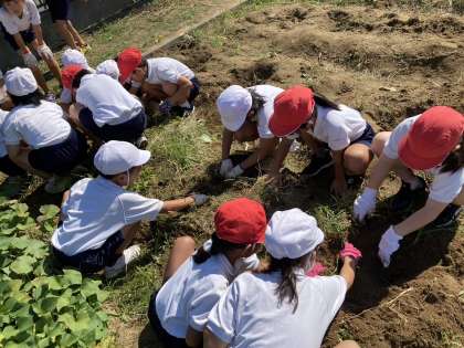 今日は2年生の全学級がいもほりを行いました。