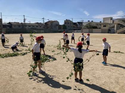 例年と比べ、大きなおいもが収穫でき、つるも立派でみんな大興奮でした。