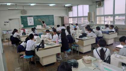 5年生の家庭科ではミシンを使った学習を進めています。