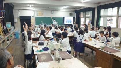 ペットボトルで雲を作る実験は子ども達の心を惹きつけたようで、一番印象に残ったという児童がとても多かったです。