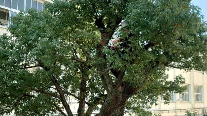 理科室前のクスノキを剪定している際には、「どうやって登ったん?」「落ちたらどうなるん?」と興味津々な様子で眺めていました。