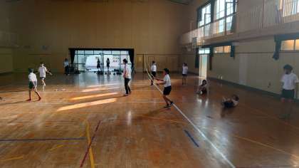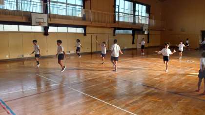 運動委員会のメンバーは、もうすぐ始まる縄跳び週間に向けて縄跳びの練習に励んでいました。
