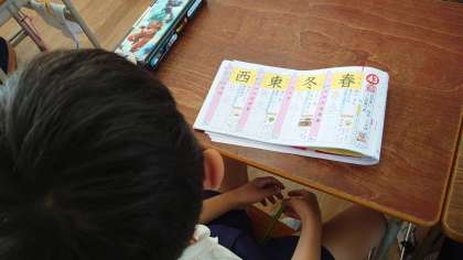 漢字学習を進めています。教室を覗いた時に「春」という漢字について学習していました。
