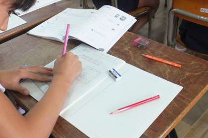 分母の違う分数の計算をしていました。計算の仕方や考え方をグループで話し合ったり、しっかり学習していました。