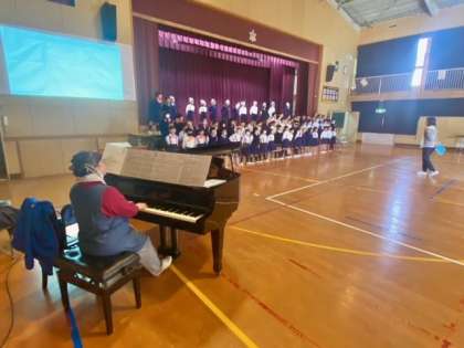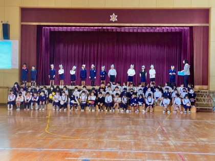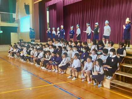 ねこさんやとりさんの被り物を被った姿が何ともかわいらしい2年生です。練習を終えて、笑顔で体育館から出てくる様子を見ると、とても充実した日々を送っている模様です。