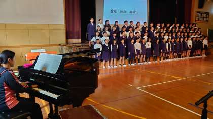 5年生にもなると、歌っている時の姿勢から目を見張るものがあります。1組と2組の2部合唱も楽しみです。
