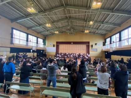 舞台に並んだところで、鍵盤ハーモニカの吹き口をひな壇の隙間に落としてしまったお友達がいたようで、それに気付いた周りのお友達が目線で先生に合図を送り、さりげなく「ここに落ちている。」と教えてくれたそうです。
