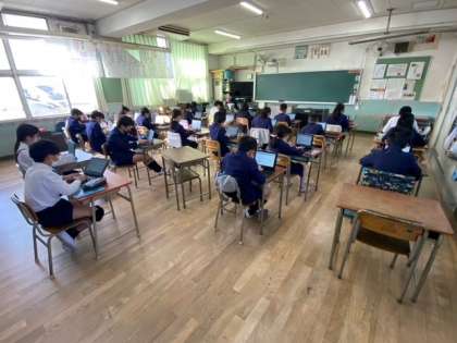 本校では4年生に限らず、他の学年でもタイピング練習を行っています。ゲーム感覚で楽しめるタイピング練習は子ども達からも人気で、楽しみながらタイピングの技術を高められることが期待できます。