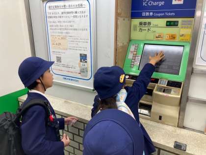 2年生にとっては大冒険の1日。券売機の高さもとても高いことが分かりますが、少しずつ何でも自分で挑戦させることで社会性や自主性が育まれていきます。