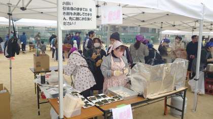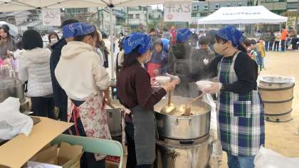 会場では、うどん、豚汁、焼きもち、おしるこなど様々な食べ物が振舞われました。