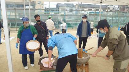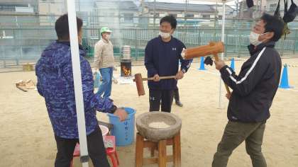 これがかなりの重労働で、朝から何度ももちつきをしてくれたお父さん方、ありがとう!心の底からでリスペクトです!