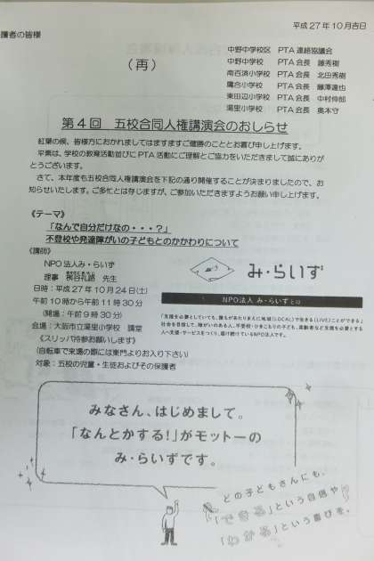 文書でもお知らせしていますが、明日10月24日(金)午前10時から湯里小学校で5校合同人権講演会が開催されます!!