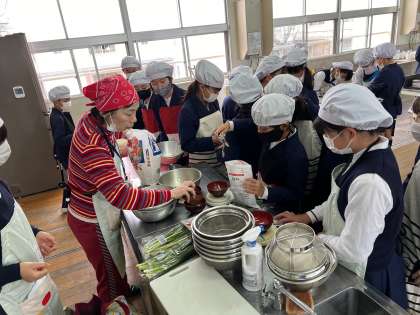 みそ汁もみその風味がとばないよう、手順を確かめながら作業を進めました。