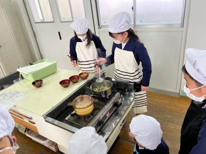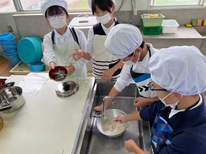 ごはんとみそ汁の調理実習を行いました。