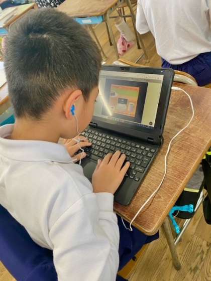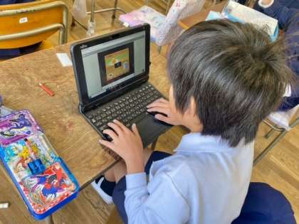タイピングが早くてびっくりです。これからの学習や将来仕事をする上でたくさん使用することになるであろうパソコン。何事もそうですが、子どものころから使っていると身に付くのも早いですね。
